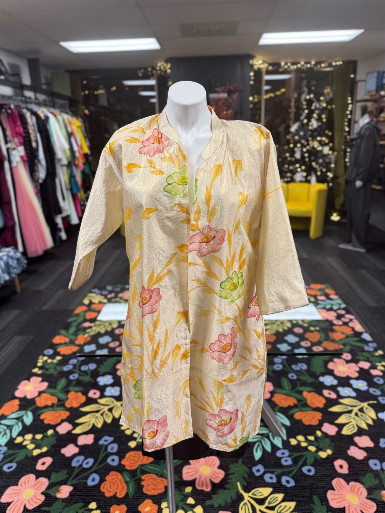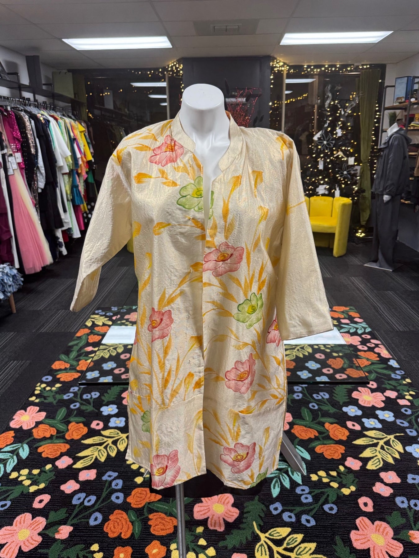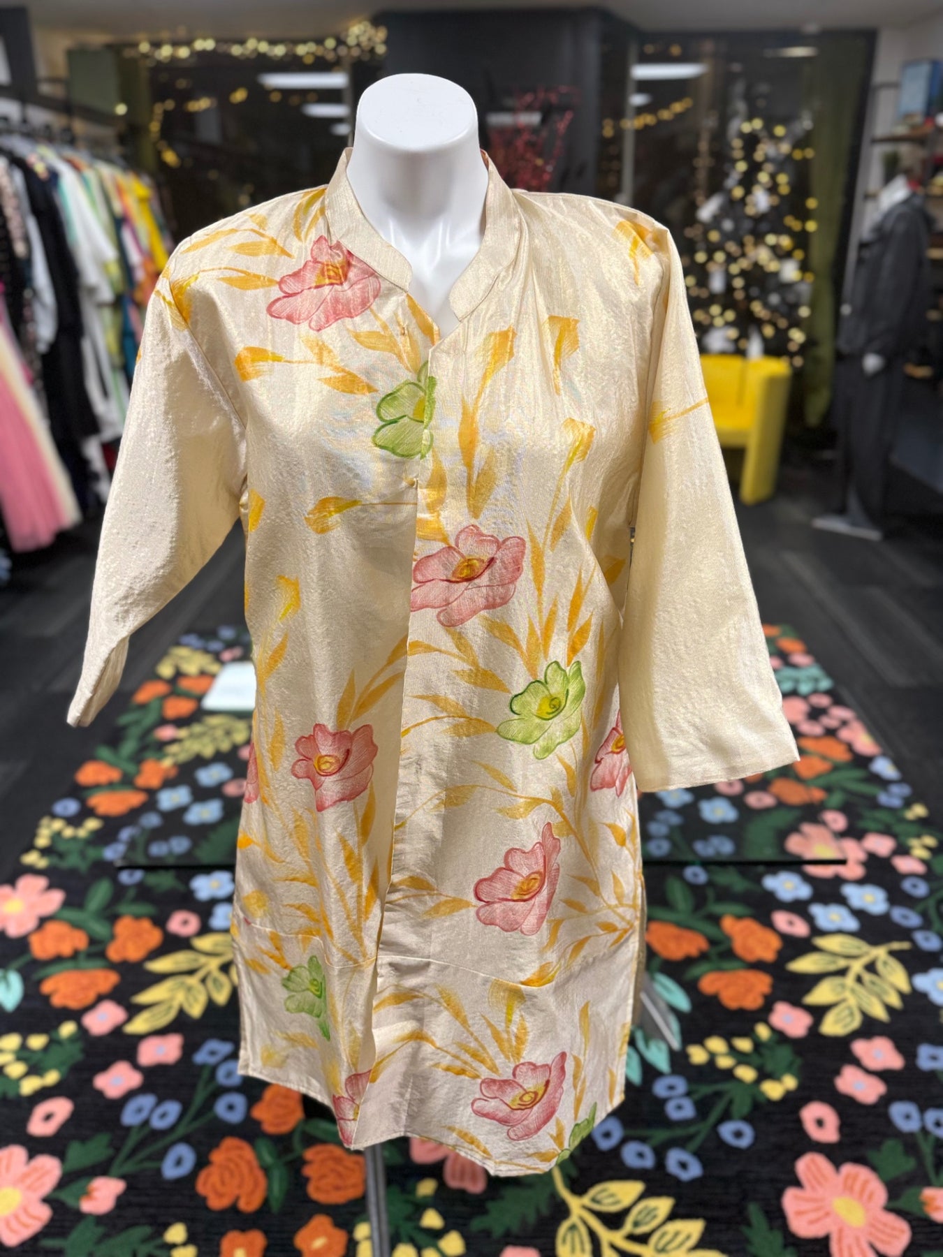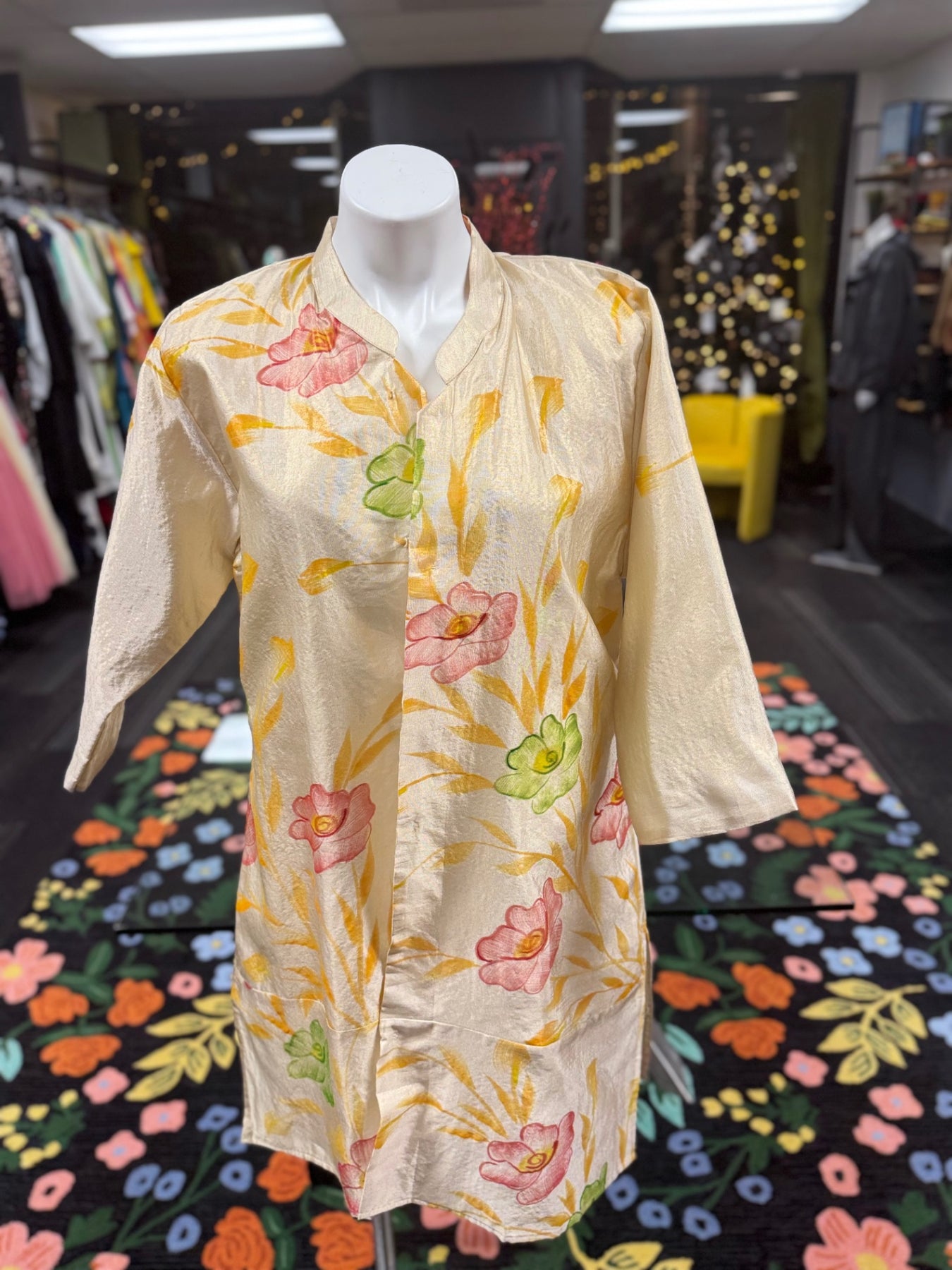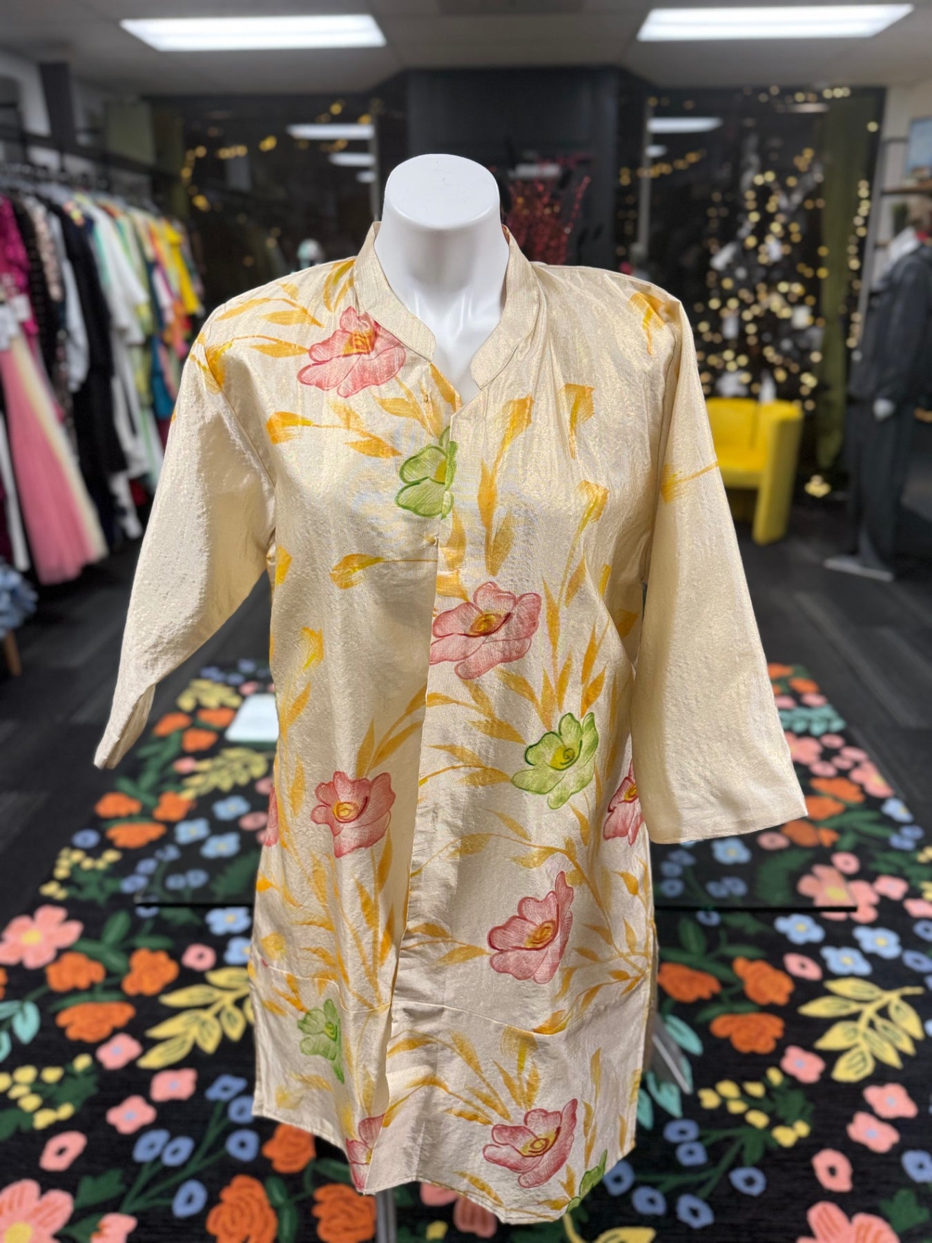 This elegant women's dress features a charming floral pattern on a cream base, perfect for spring or summer events. Its lightweight fabric offers a graceful drape, adding to the dress's sophisticated appeal. The design is both fresh and timeless, making it a versatile addition to any wardrobe. Ideal for garden parties or daytime celebrations, this dress delivers effortless style with a touch of femininity.