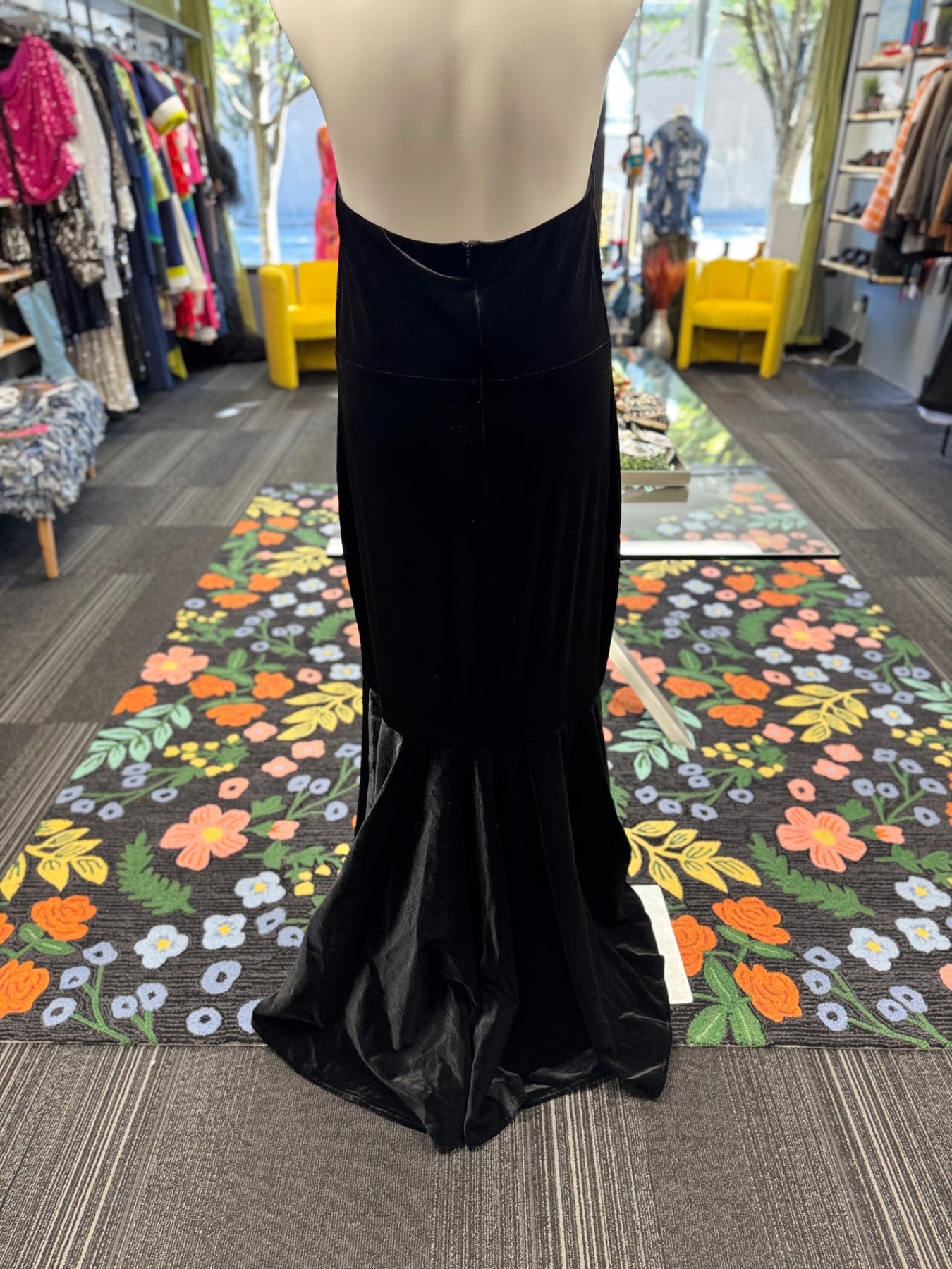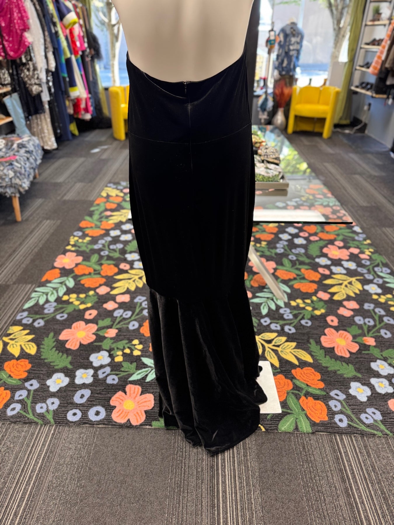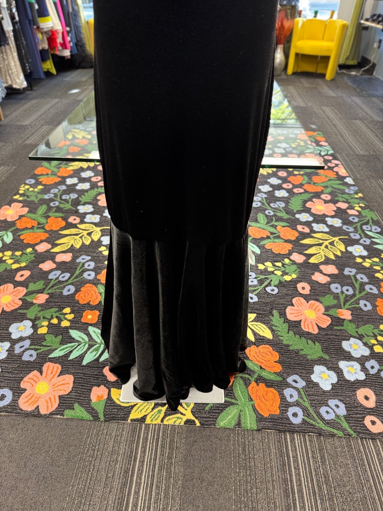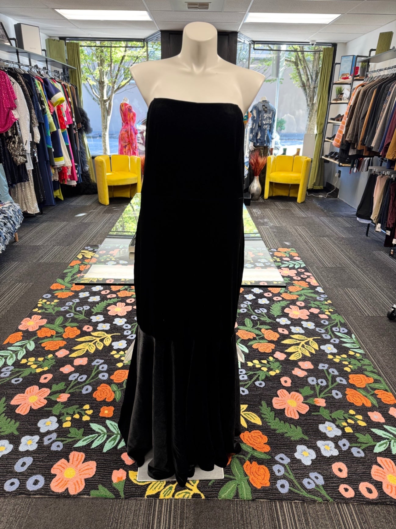 Step out in elegance with this black velvet strapless evening dress. Its luxurious fabric offers a smooth, rich feel perfect for formal occasions. The simplicity of the design highlights a sophisticated silhouette that flatters many body types. Ideal for cocktail parties, galas, or any glamorous event. This timeless piece promises to make a statement while providing comfort. A must-have for those who favor classic style with a touch of luxury.