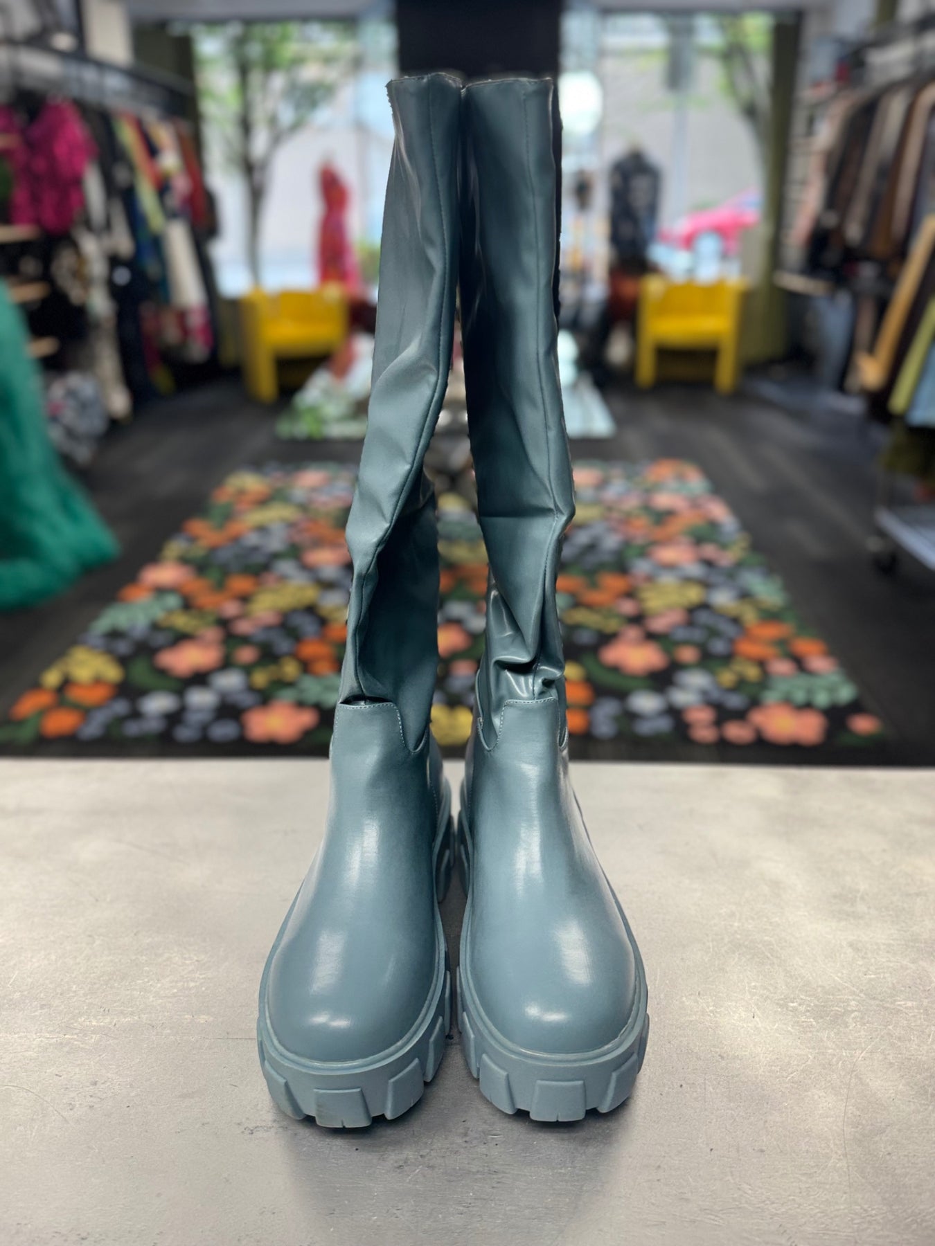 Step out in style with these trendy light blue boots. Crafted from a sleek synthetic material, they feature a chunky sole that adds comfort and a modern touch. Perfect for making a bold fashion statement while staying comfortable during your day.